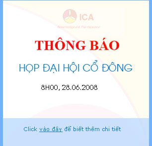 Ngày 28 tháng 06 năm 2008, tại KS Sheraton Saigon, Công ty cổ phần Công nghệ sinh học - Dược phẩm ICA đã tổ chức thành công Đại hội đồng cổ đông thường niên năm 2008.